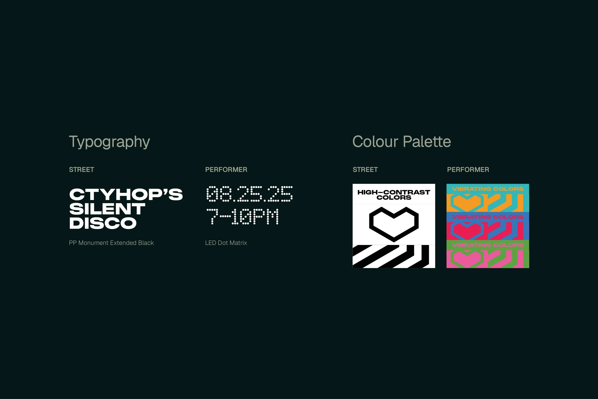 Defined a strategic duality: STREET (bold, structural, functional) and PERFORMER (expressive, rhythmic, tech-forward).